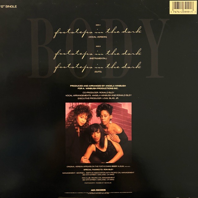 デトロイト出身、姉妹でのトリオBodyの90年リリースアルバムからのカットシングル!Muroさんのミックスにも収録されたThe Isley Brothersのメロウクラシック「Footsteps In The Dark」の極上カバー!