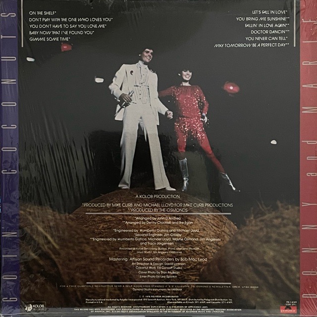 アメリカのファミリーグループ「The Osmonds」のメンバーの2人から成るユニット、Donny & Marieの78年作。流麗なストリングスから幕を開ける可憐なライトディスコA1「On The Shelf」、エモーショナルでポジティブな雰囲気に満ちた多幸感ソウルB2「You Bring Me Sunshine」、5th DimmentionのようなソウルフルトラックA5「Gimme Some Time」、込み上げる爽快なA4「Baby Now That I've Found You」などなど、フリーソウル〜AOR/サバービアな洒落たライトな質感を持った楽曲が並ぶ1枚!