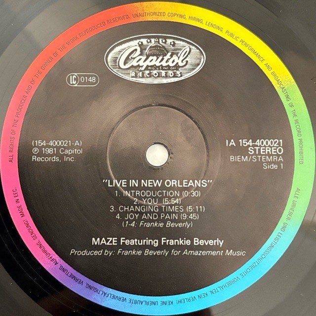 シルシーヴォイスを持つ男性シンガーFrankie Beverly率いるグループMazeが81年にリリースしたニューオーリンズでのすばらしいライブの模様を収録した楽曲とスタジオテイクを収録した2LP!