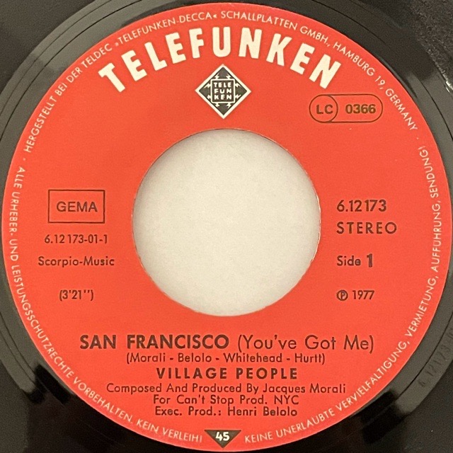 「Y.M.C.A.」や「Go West」など、音楽もステージ衣装も攻めたディスコ・グループVillage Peopleが77年に放ったデビュー・シングル。