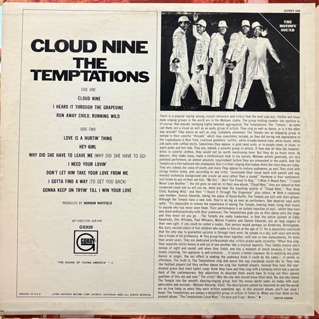 Dennis Edwards, Eddie Kendricksらが在籍していた名グループの69年リリースアルバム。