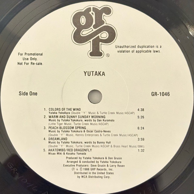 LA録音の和モノです!涼しげで軽やかなフュージョンA1「Colors Of The Wind」がまず最高です!