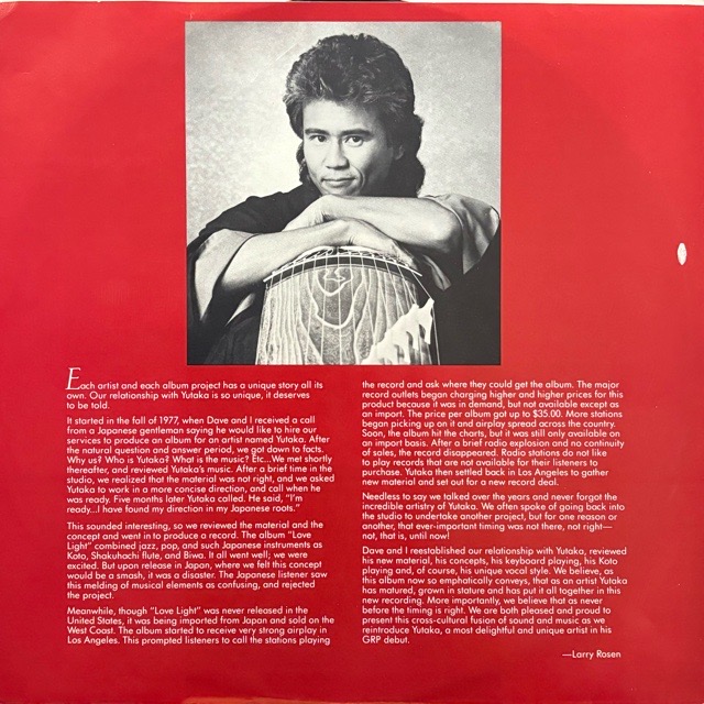 日系アメリカ人ピアニスト/キーボーディスト/琴奏者/編曲家/作曲家/プロデューサー横倉豊の88年リリースの2ndアルバム!