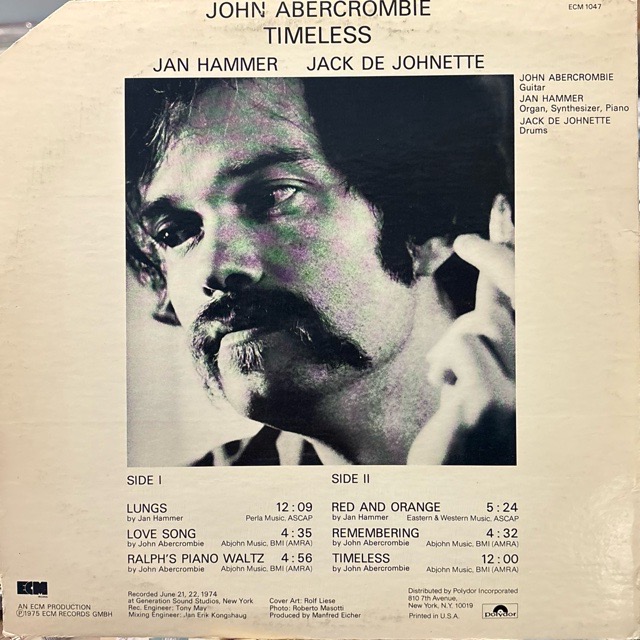 N.Y.出身のジャズギタリスト/コンポーザー John Abercrombie が、Miles Bandで活躍したJack DeJohnetteをドラムに、そしてチェコ出身のJan Hammerをキーボードに迎えてトリオ編成で吹き込んだ75年のアルバム。