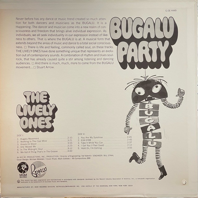 60年代にDel-Fiレコーズに幾つかのアルバムを残す西海岸のサーフバンドLively Onesが、ブーガルーがムーブメントを起こした67年に制作した企画アルバム。そしてこれが彼らのラストアルバム!サーフバンドらしい乾いたA1「Bugalu Movement」に始まり、ドラムブレイクではじまるLee DorseyカバーA1「Working In The Coal Mine」、James Brownのカバー B4「I Got You」、Sam & Daveカバー B5「Hold On, I'm Coming」、その他Wilson Pickettのカバーなど、小難しい理屈抜きに楽しめるパーティーアルバム!