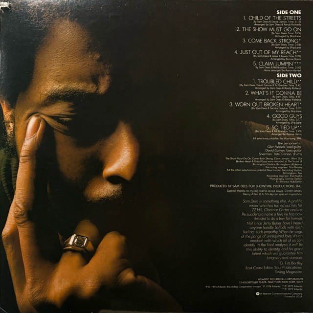 至福のモダン・ソウルと名高いBettye Swannとのデュエット曲「Just As Sure」や、多くのアーティストへの楽曲提供で知られるアラバマ出身のソウルシンガーSam Deesが自身名義で残した75年にリリースした1stアルバム。