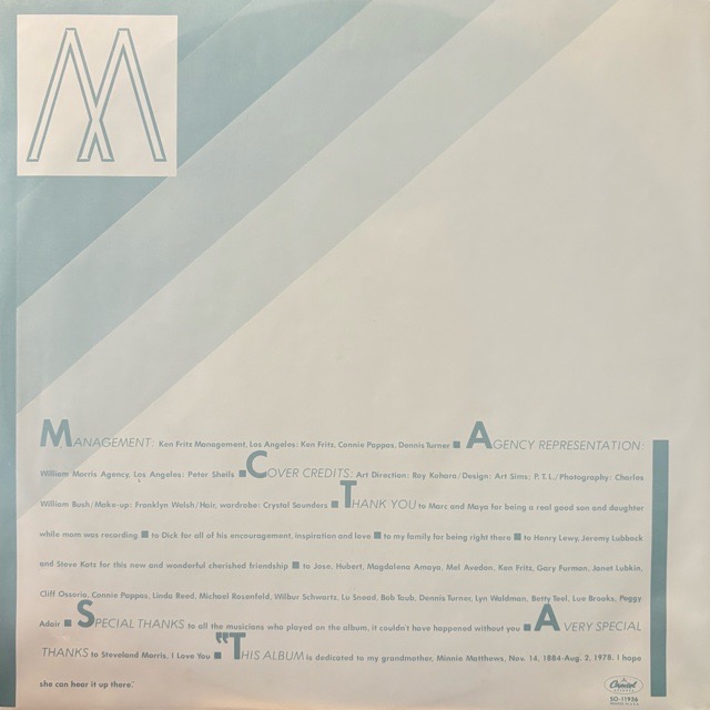 A1「Memory Lane」は、サンプリングも多数されているメロウダンサー人気曲。何という素晴らしさ!A2「Love And Friend」はStevie Wonderならではの楽しげなステップソウル、ブレイクから入るA4「Dancin' & Action' Crazy」、モダンソウルA5「Love Hurts」など、Hubert Laws、Tom Scottと言ったJazz界の名手も多数参加した素晴らしいソウルアルバム!