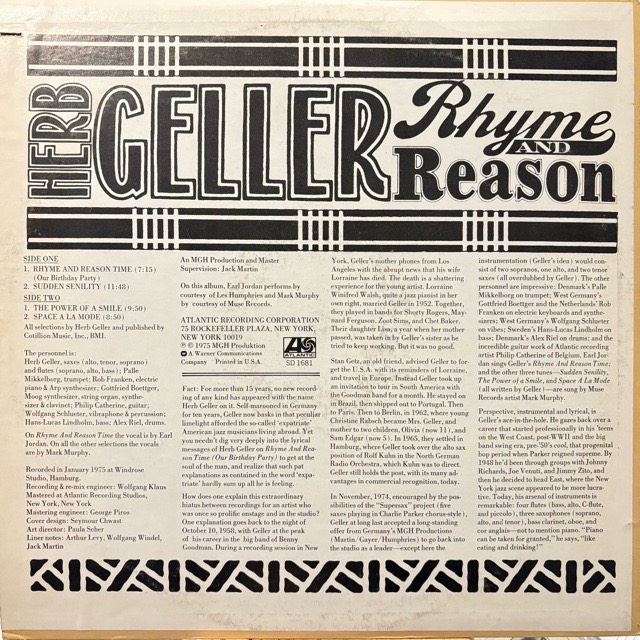 L.A.出身のジャズ・サックス奏者、Herb Gellerが75年にリリースした自身名義のアルバム