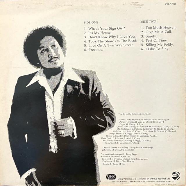 美しく甘いファルセットヴォーカルが人気のラヴァーズ・レゲエシンガーBarry Biggsが80年にリリースした個人名義としては3枚目のアルバム。Barry Whiteが制作したDanny Pearsonのスウィート・ソウルカヴァーA1「What's Your Sign Girl?」、MomentsカヴァーA5「Love On A Two Way Street」、Diana RossのカヴァーA2「It's My House」、Roberta Flackの名曲カバーB5「Killing Me Softly」、B2「Give Me A Call」など、カバーものを中心に今作も全編トロトロな最高の内容!UKオリジナル!