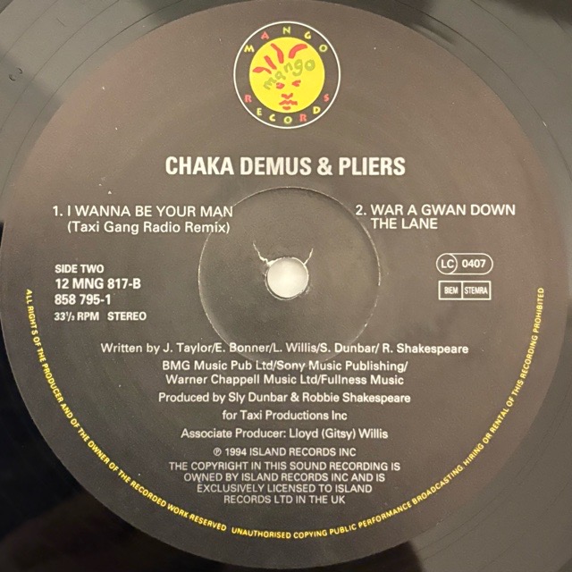 DJ John TaylorことChaka Demusとレゲエシンガー Everton BonnerことPliersによるジャマイカのデュオによる93年のシングル!