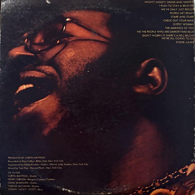 Marvin Gaye、Donny Hathaway、Leroy Hutsonらと並びニューソウルを代表するシカゴ・ソウルのレジェンドCurtis Mayfieldが、71年にニューヨークのグリニッジ・ヴィレッジのクラブ「ビター・エンド」で行ったライブの模様を録音したライブ盤!