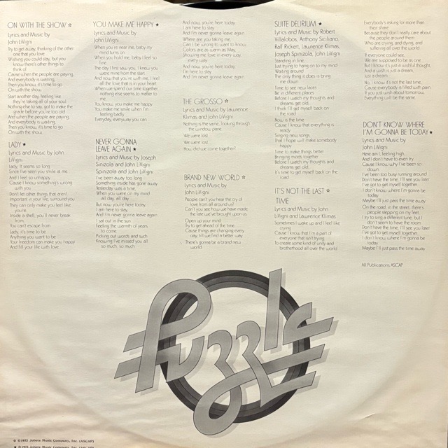白い Stevie Wonderと言わしめる白人シンガーJohn Valenti(John LiVigni)が在籍したブルーアイド・ソウル〜ソフトロック・バンドPuzzleがMotownよりリリースした1stアルバム。フォーキーでライトなリズムがゆらゆらと漂うメロウA2「Lady」、ゴージャスなブラスから一気に鷲掴みにされるフリーソウルA3「You Make Me Happy」、70'sソウルのようなオープニングからライトメロウなAORチューンへと展開するA4「Never Gonna Leave Again」、ファンキー・サイケロックといったB3「It's Not The Last Time」など、ブルーアイド・ソウルの域を超えて人気の名作です!