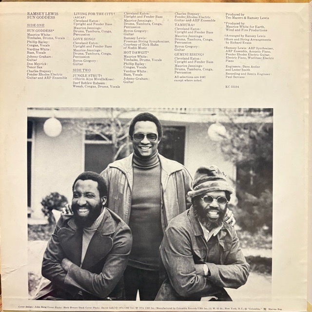 タイトル曲A1「Sun Goddess」は、エレピやコーラスのリフレインが神々しいオーラを放つ最高のメロウジャズ名曲!!Stevie Wonderの名曲カバーとなる尖ったアレンジが光るA2「Living For The City」、メロウジャズA3「Love Song」、タイトなドラムにガヤ入りジャズファンクB1「Jungle Strut」、一聴しただけでMaurice WhiteだとわかるEarth Wind & Fire印なラテンソウルB2「Hot Dawgit」、ロウテンポのジャズグルーヴB3「Tambura」、スリリングで妖しい展開を聴かせるB4「Gemini Rising」などなど、ジャケットの佇まいから、すでに只者では無いオーラを醸し出す名作!