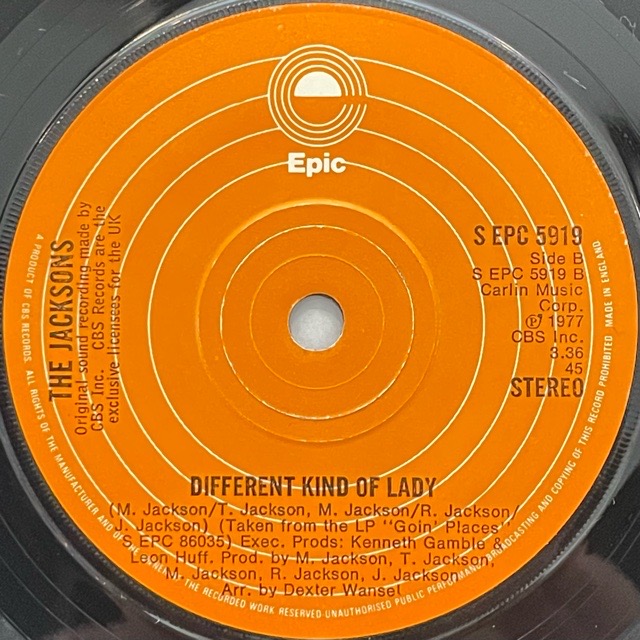 Michael Jacksonが青年期を過ごした兄弟グループThe Jacksonsが、Gamble & HuffやDexter Wansel等フィリーソウルの敏腕プロデューサーのバックアップを受けて77年に放ったアルバム「Goin' Places」から2曲をカットしたシングル。ドラマチックなストリングスが流れるミディアム・ヤングソウル「Even Through You're Gone」、楽しげなMichael Jacksonの面影を思い出さずにはいられないダンストラック「Different Kind Of Lady」ともに素晴らしい!