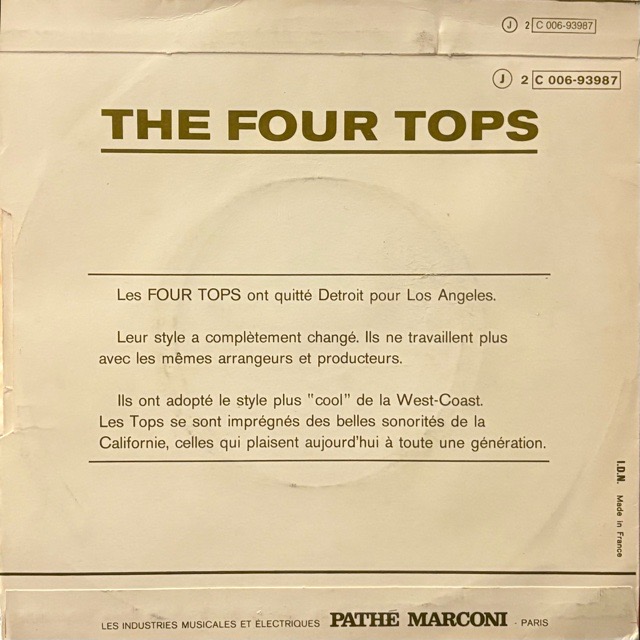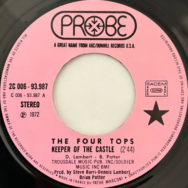 名門Motownに数々の作品を残すデトロイトのソウル・ヴォーカルグループFour TopsがDunhill移籍後の第一弾として放った72年のアルバム「Keeper Of The Castle」からタイトルをカットしたシングル。