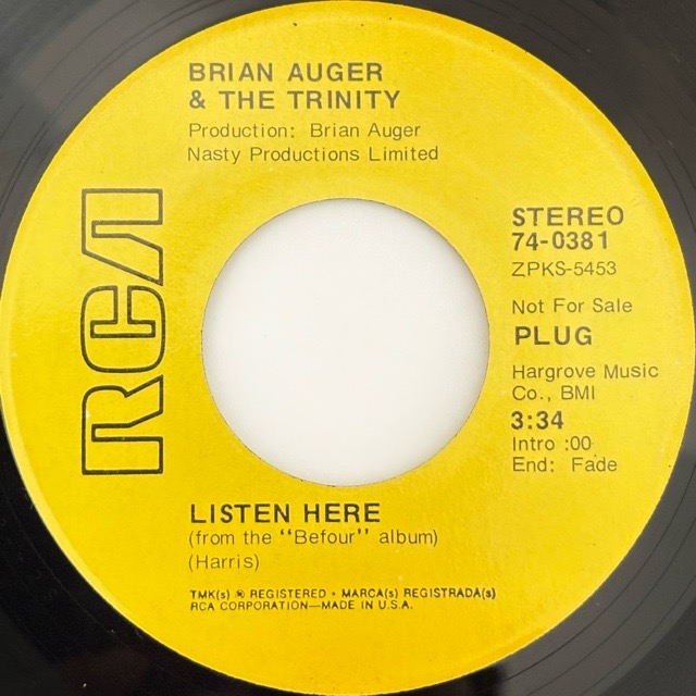 イギリスはロンドン出身の鍵盤奏者Brian AugerがThe Trinityとの名義で70年にリリースしたアルバム「Befour」から2曲をカットしたシングル。