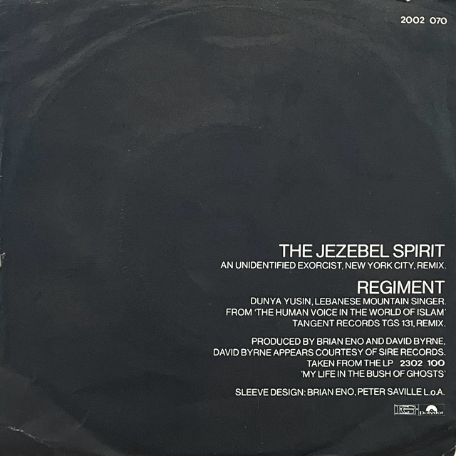エレクトリック〜アンビエントの重鎮Brian EnoとTalking HeadsのDavid Byrneがの共演として81年に放ったコラボアルバムの名盤「My Life In The Bush Of Ghosts」からのシングルカット。