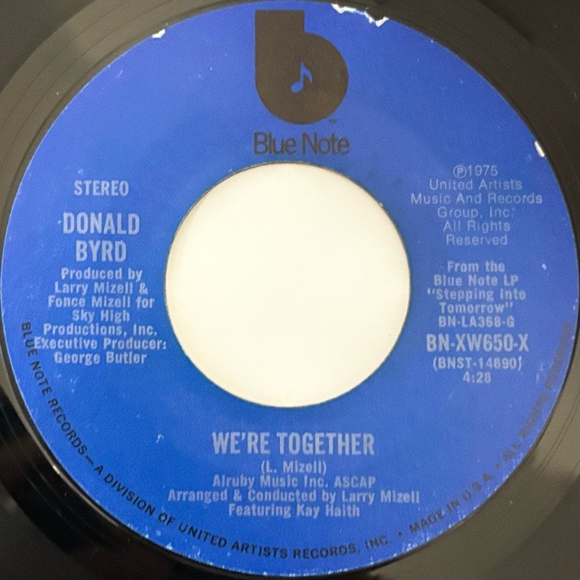 50年代から活動を始め、ハードバップからジャズ・ファンク/ソウル・ジャズへと幅広く展開し、70年代にはジャズの枠を越え、ファンク/ディスコ/ヒップホップ文化にも影響を与えるレジェンドトランペッター/フリューゲルホーンDonald Byrdがリリースしたアルバム「Stepping into Tomorrow」からのカットシングル。