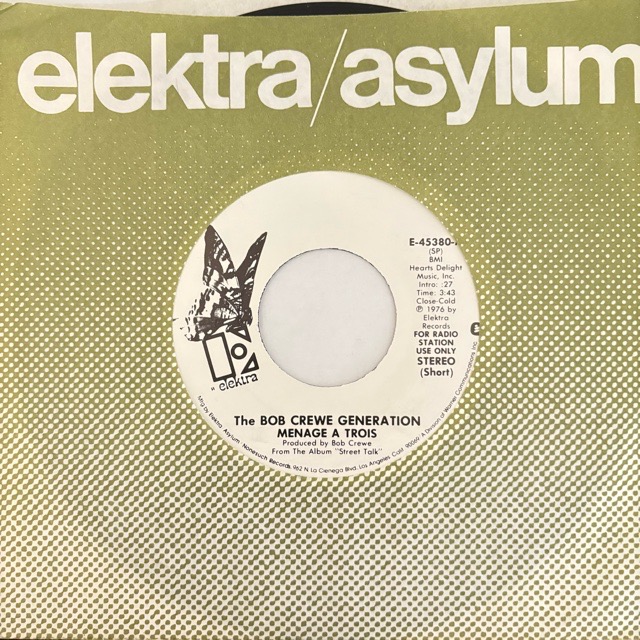 Four Seasons等の楽曲をFrankie Valliと共に執筆したことで知られるコンポーザー/シンガーのBob Creweが主宰するスタジオバンドThe Bob Crewe Generationの76年作「Street Talk」からカットされたシングル