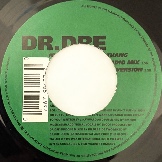 なんとオリジナルジャケ付きUK 7inch!90年代のウエストコースト・ヒップホップを代表する名曲「Nuthin’ But A ‘G’ Thang」Dr. Dreがプロデュースし、Snoop Doggy Doggをフューチャーした1992年の大ヒットナンバー!