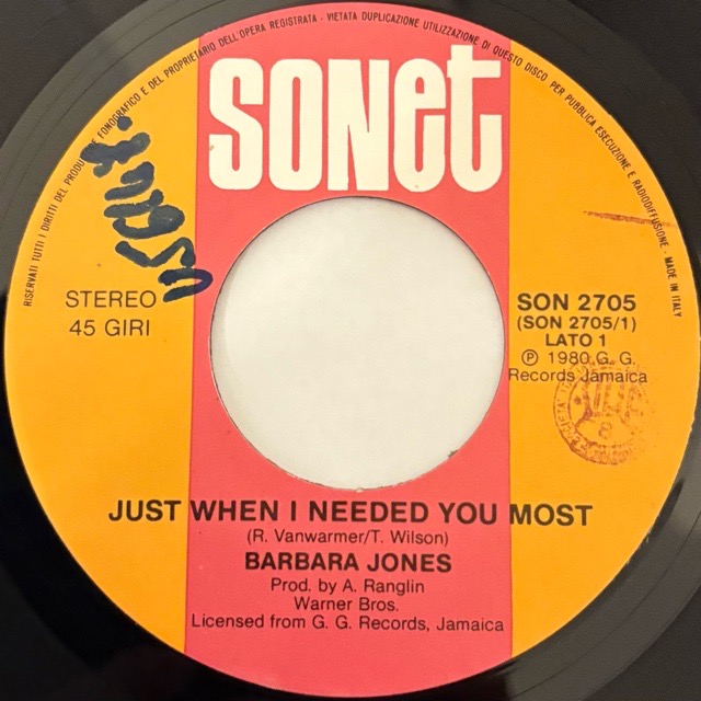 Side-A「Just When I Needed You Most」は、USのシンガーRandy VanWarmerの名曲を柔らかくレゲエ化したカヴァーで、しなやかなスカ・フィールとラヴァーズ的な歌い回しが同居するアーバンな仕上がり。プロデュース/トータル・プロダクションにはA. Ranglinの関与が伝えられ、温かみのあるレゲエ・アレンジと程よいヴォーカルの距離感が持ち味です。