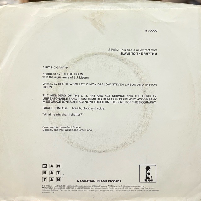 本作は85年リリースのシングルで、同年リリースのアルバム『Slave To The Rhythm』からのカット。