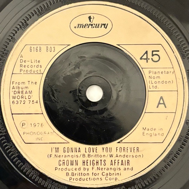 「Dancin'」「Dreming A Dream」といったディスコクラシックも有名なNY発のグループ、Crown Heights Affairの78年の名盤残「Dream World」から2曲をカットした7inch