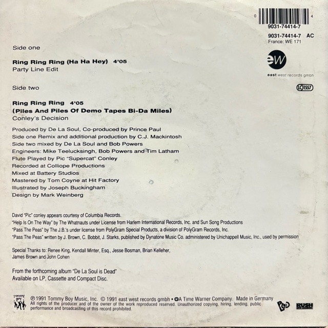 91年の名盤2ndアルバム「De La Soul Is Dead」からのカットシングル。