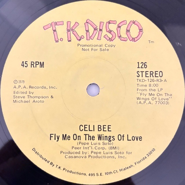 70年代後半、ラテンやユーロの香りを漂わせつつ、華やかでキャッチーなディスコ路線を確立したシンガーCeli Bee。彼女が79年に発表したアルバム「Fly Me On The Wings Of Love」からのカット12inchシングル。