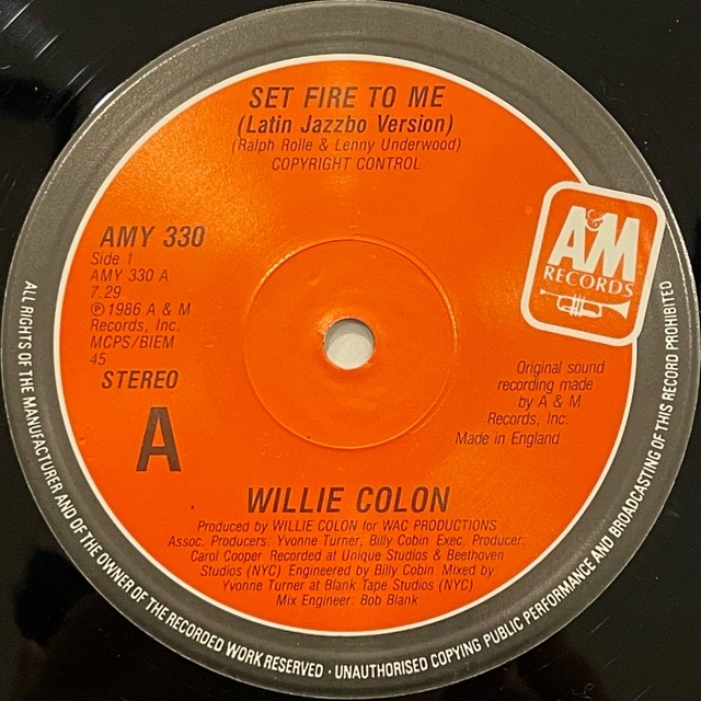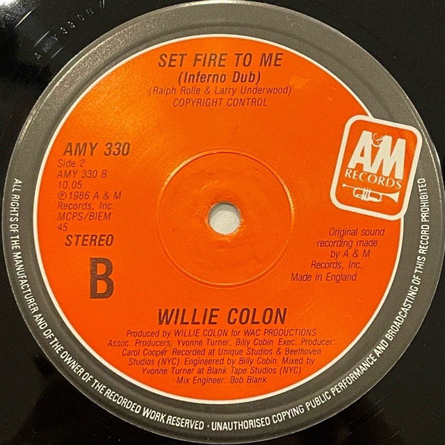 ラテン名門Fania All Starsのメンバーであり、トロンボーン奏者/シンガー/コンポーザー/サルサミュージシャンの Willie Colonが86年に放った12inchシングル!重圧なビートに終始パーカッションが入り乱れるラテンハウス最高曲!暗闇で聴けば即ノックアウト確実のキラーチューン!「Inferno Dub」は声の要素を徹底的に取り除き、ひたひたと繰り返されるダビー処理された空間がとにかくやばい!こちらも即ノックダウン!