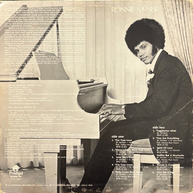 ソウル・ヴォーカルグループFour Topsで活躍したアラバマ出身のシンガー・ソングライターRonnie McNeirが75年に残した自身名義の2ndアルバム。