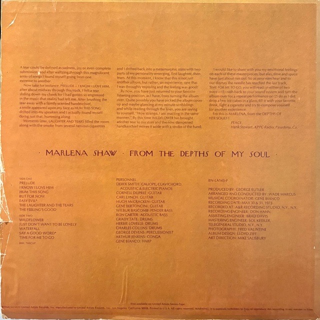 アルバム「Who Is This Bitch, Anyway?」や「Woman of the Ghetto」などの名曲を残す女性シンガーMarlena ShawのBlue Noteレーベルでの2作目となる73年作。