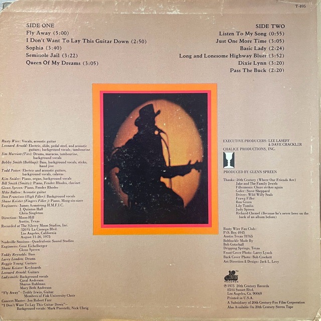ダブルプラチナアルバム受賞歴もあるテキサス出身オースティン出身のシンガーソングライターRusty Wierの75年リリースアルバム。