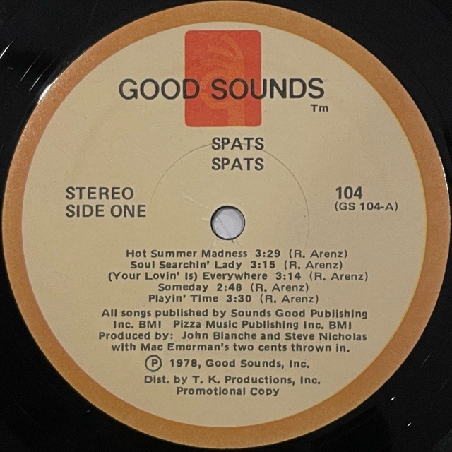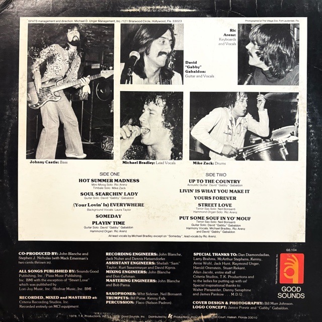 フロリダはTK傘下のGood Timesレーベルからリリースされた白人5人からなるロック/ソウルバンドSpatsが78年に残した唯一のアルバム