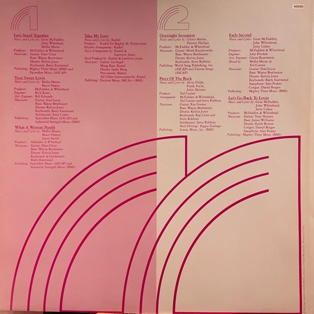 時期的にもブギーディスコなアルバムとなっており、McFadden & WhiteheadをメインにPatrick Adamsや Kashifらがプロデュースで参加