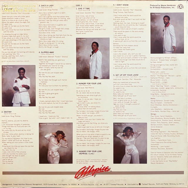 華やかなホーン、エレピ、じんわり沁みるコーラスやメロディが美しいアーバンなムードが広がるモダン・ソウルA2「Destiny」やB2「Hungry For Your Love」、