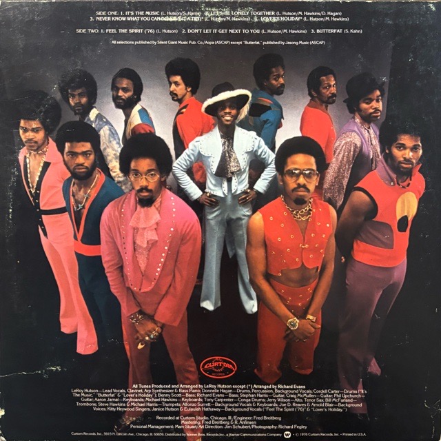 Voices Of East Harlemのプロデュース等、確かな手腕を発揮した名シンガーソングライター/プロデューサーLeroy Hutsonの76年作。軽快なカッティングからファンキーなA1「It's The Music」を筆頭にB1「Feel The Spirit('76)」、B3「Butterfat」などのファンキーソウル曲、そしてA3「Never Know What You Can Do」、優しいメロディーラインが心地良いA4「Lover's Holiday」、ネオソウルへの移り変わりを確かに感じるB2「Don't Let It Get Next To You」など、メロウ曲からファンキーチューンまで素晴らしい楽曲を目一杯収録したシカゴソウル名盤です。