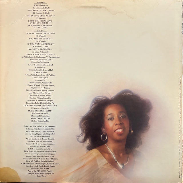 70年代のPhiladelphia Internationalを代表する歌姫として、豊かな表現力と気品あるファルセットでシーンに強烈な存在感を残した女性ヴォーカリストJean Carn
