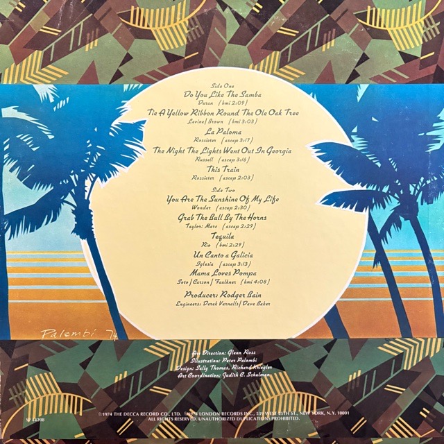 A2「Tie A Yellow Ribbon Round The Ole Oak Tree」、A3「La Paloma」など、親しみやすいカバーも収録したラテン・オーケストラの魅力を存分に楽しめる一枚!
