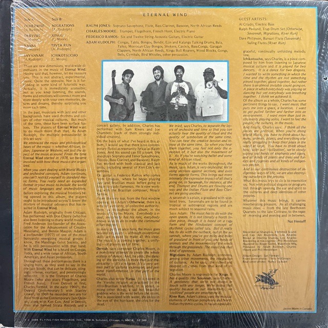 パーカッション奏者Adam Rudolphを中心に、ジャズ/フュージョンの世界で確かなキャリアを築き、自然音や民族音楽の要素も取り入れ、繊細かつスピリチュアルな音世界を描き出すのが特徴のEternal Windが84年に残したアルバム。
