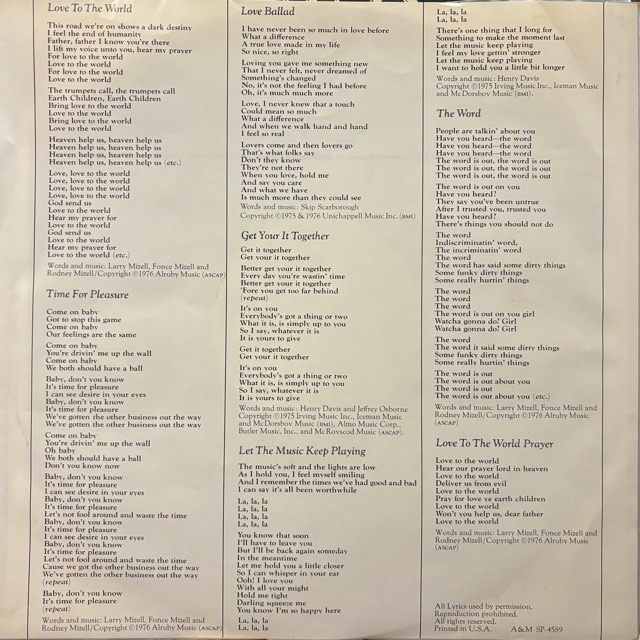 美しいコーラスとメロウな雰囲気のB4「Love To The World Prayer」など、
