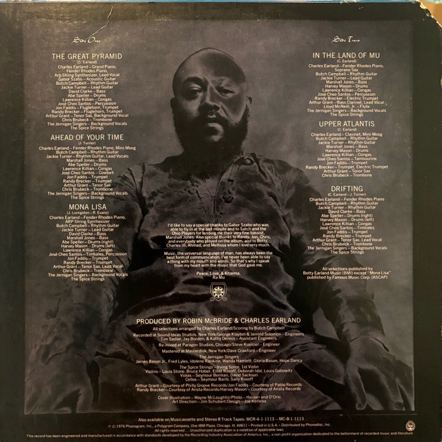 イントロのエレピフレーズでもう爽や、かつエレガントなA2「Ahead Of Your Time」やA3「Mona Lisa」、メロウなB1「In The Land Of Mu」、ジャズ・ファンクB2「Upper Atlantis」など、