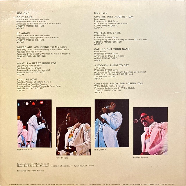 Smokey Robinson脱退後も、そのメロディセンスとコーラスワークの完成度は衰えることなく、本作でも円熟味を感じさせる好内容を聴かせてくれます。