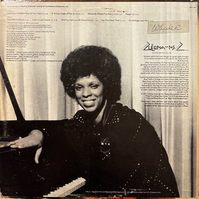 Faith, Hope & Charityの初期メンバー、女性シンガーZulemaの75年リリースの人気アルバム。