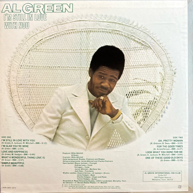 プロデュースはAl Green本人とWillie Mitchellという黄金のタッグで制作し、吹き込んだ72年作品。