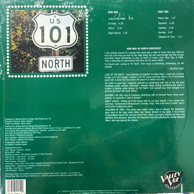 80年代後半から90年代前半にかけて活動し、アルバムを2枚残したAOR〜フュージョン寄りの洗練されたサウンドを追求したスタジオ・プロジェクト101 North。プロデュースはGeorge Duke。