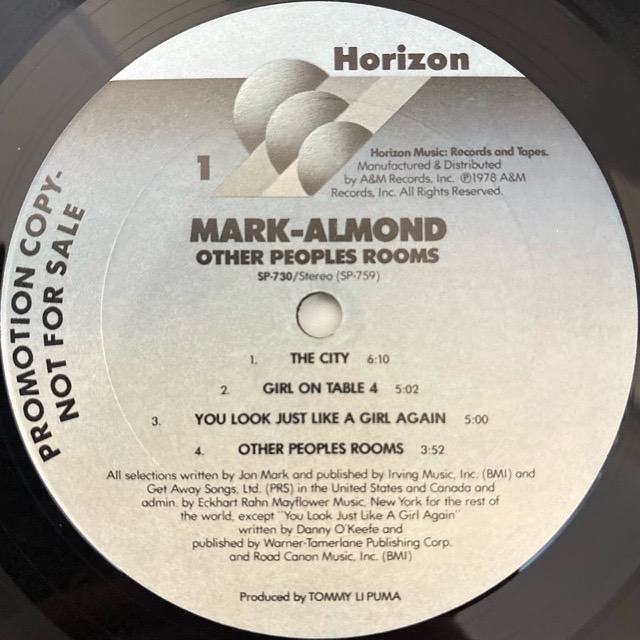 ジャズ寄りのアレンジが光る洒脱なA2「Girl On Table 4」、メロディの美しさが際立つMark-Almondらしい叙情派ナンバーA3「You Look Just Like A Girl Again」、