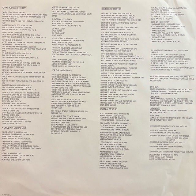 The Isley Brothersのメンバー、Chris Jasper、Ernie Isley、Marvin Isleyによるスピンオフ・グループ、Isley Jasper Isley。ソウルフルな歌声とメロディアスな楽曲で80年代後半のR&Bシーンに確かな存在感を示した彼らの3作目となる87年作。