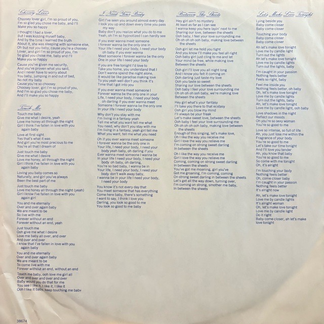 Notorious B.I.G.「Big Poppa」、Keith Murray「Most Beautiful In The World」などのベースとなったメロウクラシックB1「Between the Sheets」を収録!その他、AaliyahがカバーしたアーバンスロウA1「Choosey Lover」、Jay-Z「A Week Ago」で使用したB1「Ballad For The Fallen Soldier」、ロマンティックなA3「I Need Your Body」など収録したアーバンソウル名盤!
