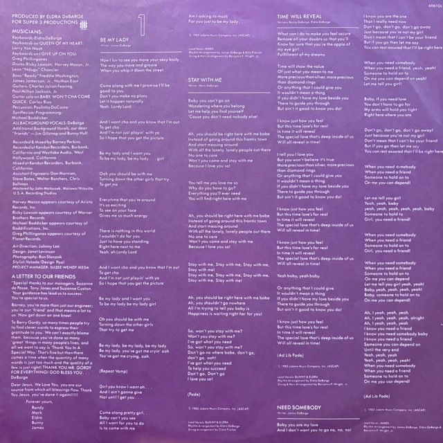 Daz Dillingerが制作した2Pac「I Ain't Mad At Cha」で使ったピアノのリフレインが胸に突き刺さるスロウB5「A Dream」、Blackstreetがカバーした奇跡の名曲A3「TIme Will Reveal」やB1「Love Me In A Special Way」などを収録した80年代アーバンソウル史に燦々と輝き続ける大名盤!